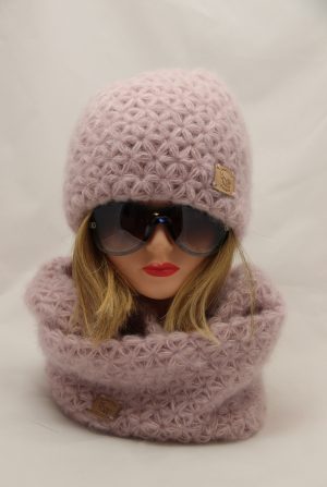 Zestaw czapka + szal-komin Jasmina Elegancja E-EL 318 pudrowy róż