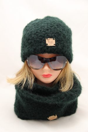 Zestaw czapka + szal-komin Jasmina Elegancja E-EL 204 zieleń butelkowa