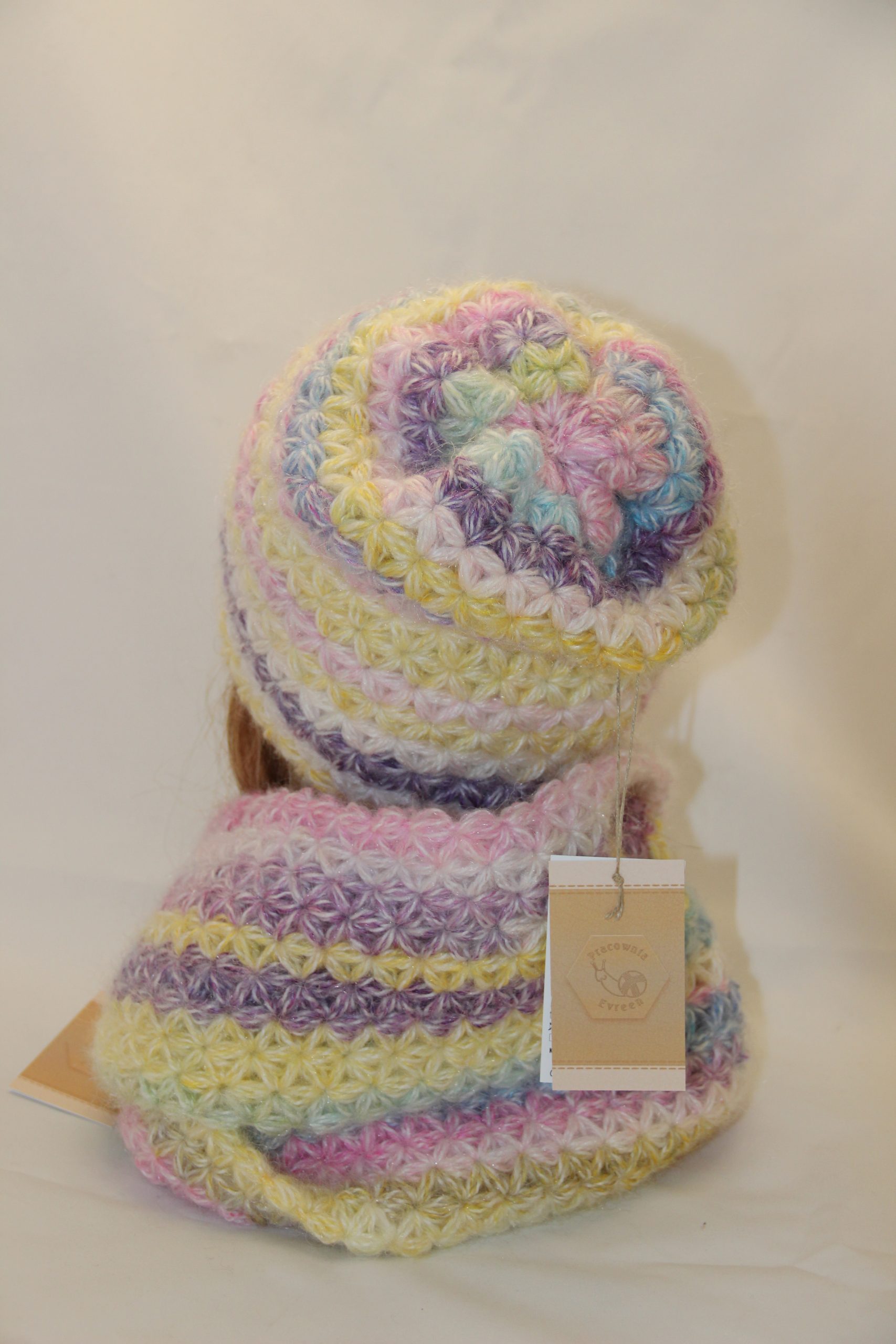 Czapka wykonana jest ręcznie, dlatego jest niepowtarzalna, a tym samym nie ma dwóch jednakowych, poszczególne wyroby, choć na pozór takie same, mogą nieznacznie różnić się między sobą w zakresie rozmiaru, a także koloru, który z kolei może być zróżnicowany w zależności od partii dostawy włóczki. Zmiany te są niezależne od rękodzielnika i nie stanowią wady czy niezgodności z prezentowanym na fotografii egzemplarzem pokazowym.